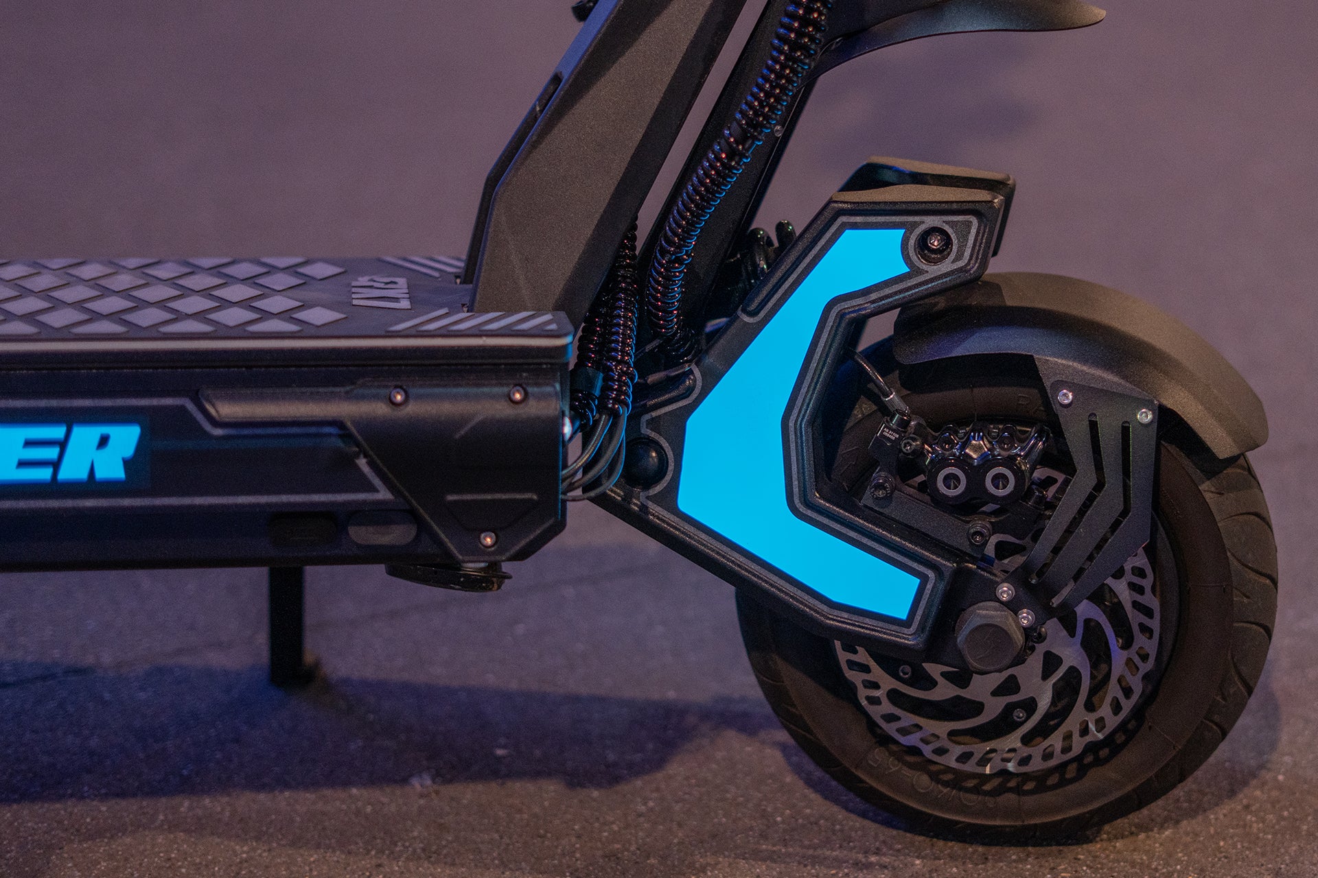 The RX7 is the first and only hyper electric scooter featuring ROADGLO an electroluminescent paint coating system, achieved by the passage of electrical currents within the paint.